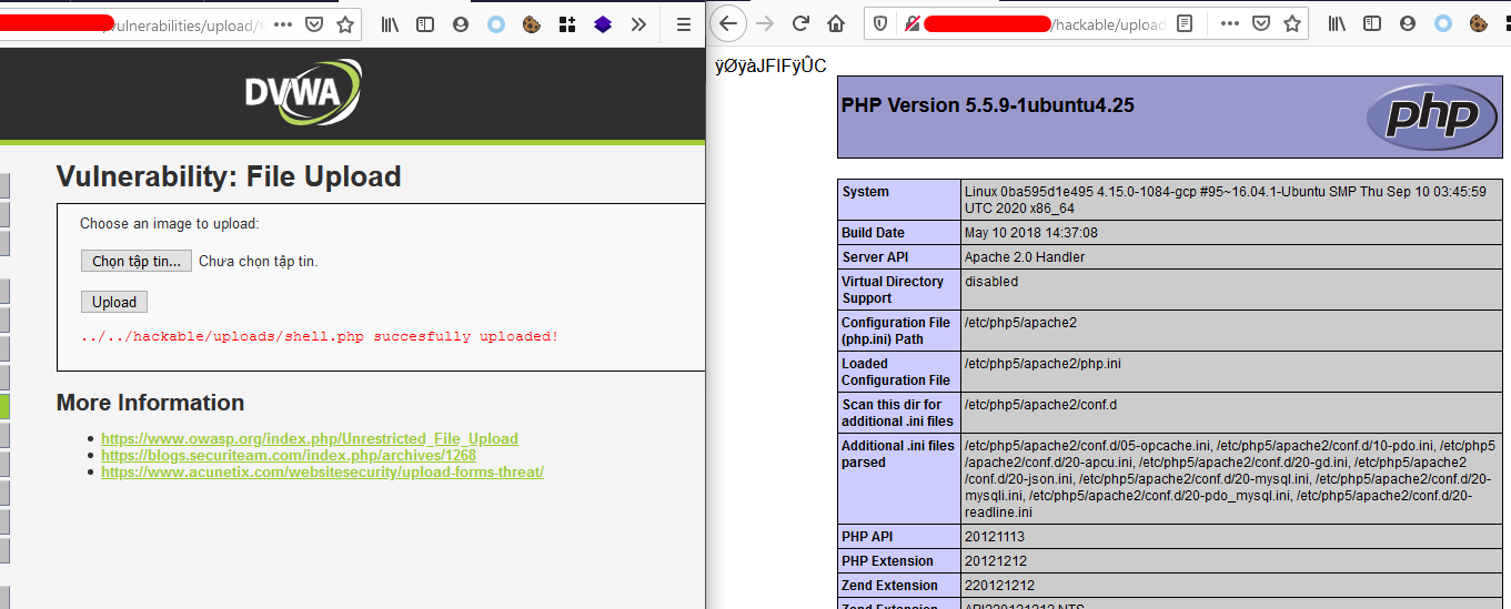 Bước 3: Kết quả upload thành công file shell.php lên server và có thể rce được server