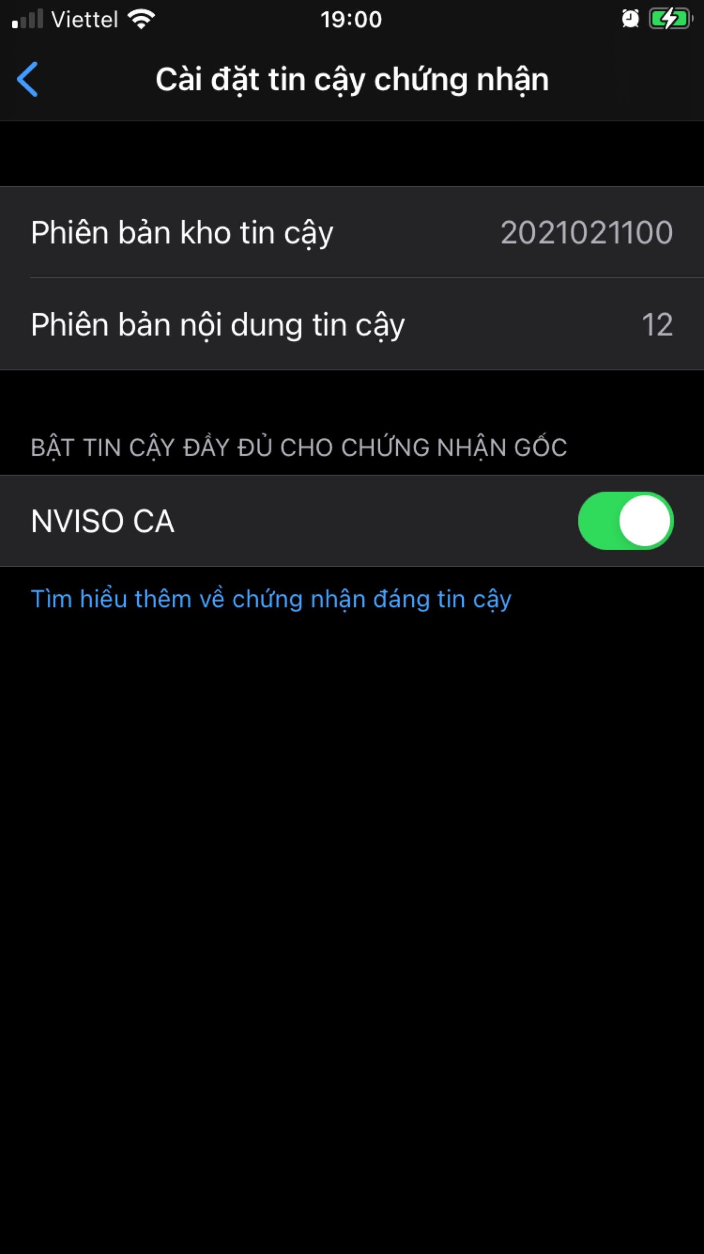 Cuối cùng là đặt chứng chỉ này thành root CA. Vào Cài đặt > Cài đặt chung > Giới thiệu > Cài đặt tin cậy chứng nhận và enable root CA cho chứng chỉ chúng ta vừa cài đặt.