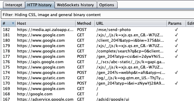 Trên phần intercept của burp ta có thể xem các gói tin gửi từ thiết bị iOS