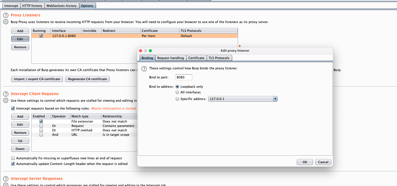 disabled. Now you can intercept