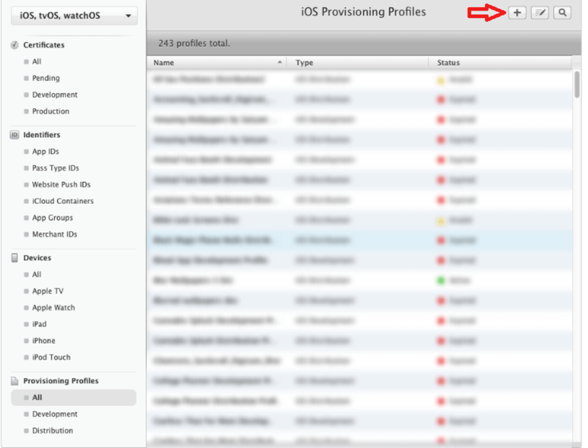 Ở menu bên trái chọn mục Provisioning Profile > bấm button + ở góc trên.