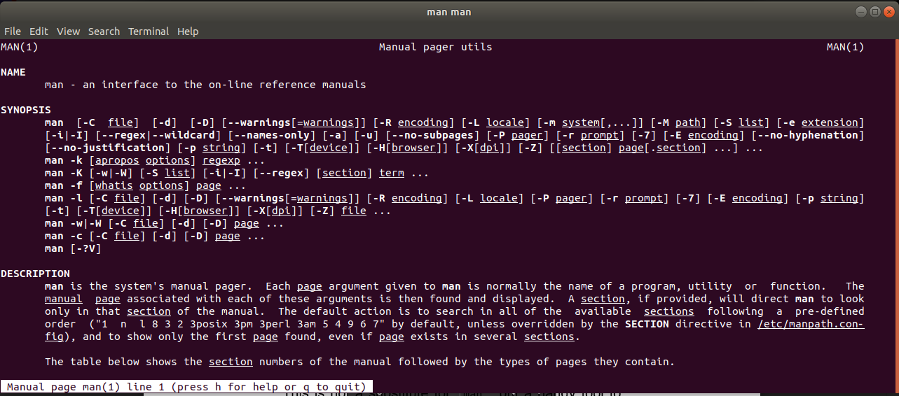 Đây là command đầu tiên mình muốn giới thiệu, nó là một command giúp bạn hiểu tất cả các command khác. Cú pháp man <command> - trong đó command là command bạn cần tìm hiểu.