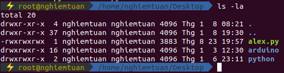 Command này cho phép một vài options. Tuy nhiên có 1 option hay sử dụng nhất là ls -la path-to-file nó cho phép lấy thông tin quả tất cả file và thư mục kể cả file ẩn và quyền của các file.