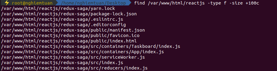 - Tìm kiếm file có nhiều hơn 100 bytes: