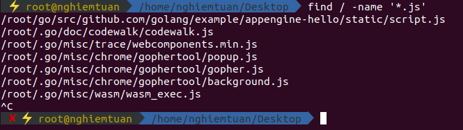 - Để tìm kiếm tât cả các file có phần mở rộng là ".js" và in ra relative path của các file:
