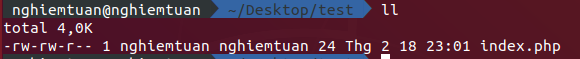 - Mỗi cụm 3 kí tự tiếp theo (rw-): xác định quyền có thể thực hiện được đối với file này lần lượt theo thứ tự 3 cụm thể hiện quyền của owner - group - other. Mỗi cụm được tạo bởi 3 kí tự rwx (Read-Write-Execute).