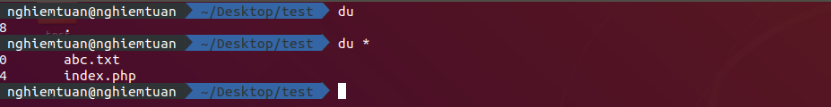 Ngoài ra có các option khác như: du -m - Đơn vị MegaBytes, du -g - Đơn vị GigaBytes, du -h