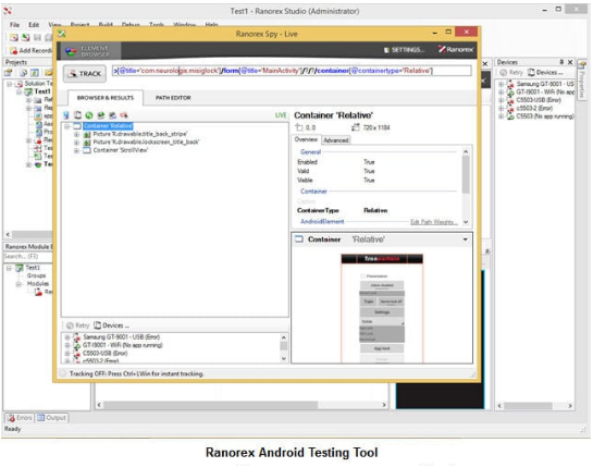 Ranorex là một công cụ tốt để tự động hóa quá trình test không chỉ cho phiên bản mới nhất mà còn cho các phiên bản đầu tiên và các phiên bản phụ của Android, bắt đầu từ Android 2.2.