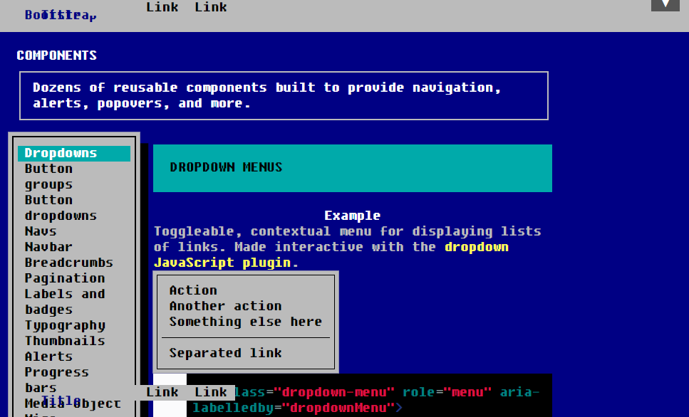 "Giao diện máy tính tiên tiến nhất" của hệ điều hành DOS những năm 1980 được làm sống lại bởi BOOTSTRA.386. Được phát triển là một theme của Bootstrap, các quy tắc đặt tên class, component, layout... đều được sử dụng lại. Nếu đã quen với Bootstrap thì bạn sẽ sử dụng bộ framework này dễ dàng.