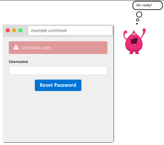 Ví dụ như khi đăng nhập bạn thông báo chính xác "User không tồn tại" hoặc "Password không chính xác", người dùng có thể vui, nhưng bạn cũng vô tình cung cấp cho hacker những thông tin như rằng người này có hay không tồn tại trong hệ thống. Hoặc đôi khi cũng là khi phản hồi lâu hơn bình thường, hacker cũng sẽ nhận ra rằng user name này có thể tồn tại nên hiện đang phải check thêm password nên mới lâu như vậy....
