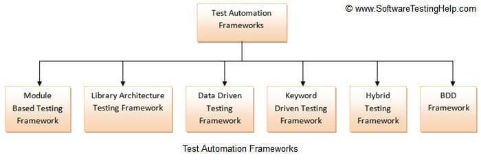 Dưới đây là 6 framework dành cho kiểm thử tự động thường gặp nhất. Thứ tự được sắp xếp tăng dần theo độ phức tạp và các mức độ trong việc định hướng để đạt được các mục tiêu kiểm thử. Và các khía cạnh dùng để đánh giá việc đó bao gồm khả năng mở rộng, tính tái sử dụng, nỗ lực dành cho việc bảo trì và chi phí đầu tư dành cho các kỹ năng liên quan đến kỹ thuật như là chuyển giao kiến thức, đào tạo nhân lực hay các nỗ lực cần có để học hỏi các công nghệ mới…