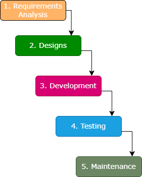 1. Waterfall Model (Mô hình thác nước): Có các giai đoạn phát triển phần mềm tuần tự từ đầu đến cuối, bắt đầu từ yêu cầu, thiết kế, triển khai, kiểm thử và bảo trì. Mỗi giai đoạn phụ thuộc vào kết quả của giai đoạn trước đó.