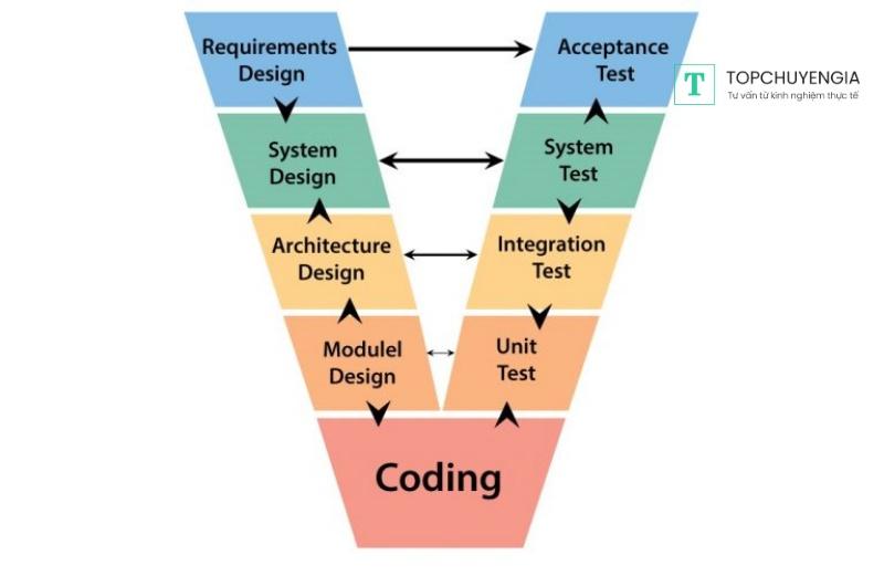 5. V-Model (Mô hình V): Một biến thể của mô hình thác nước, trong đó mỗi giai đoạn phát triển có một giai đoạn kiểm thử tương ứng.