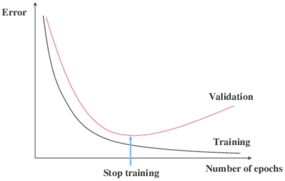 Khi training model thì không phải lúc nào (hàm mất mats) loss của tập train và tập test cũng đồng thời giảm, tới một epoch nào đó thì loss của tập train sẽ tiếp tục giảm nhưng loss của tập test không giảm mà tăng trở lại => Đó là hiện tượng overfitting. Vì vậy để ngăn chặn nó, thì ngay tại thời điểm đó người ta sẽ dừng việc training ( vì để chương trình tiếp tục training thì cũng không cải thiện được gì mà lại tốn tài nguyên ).