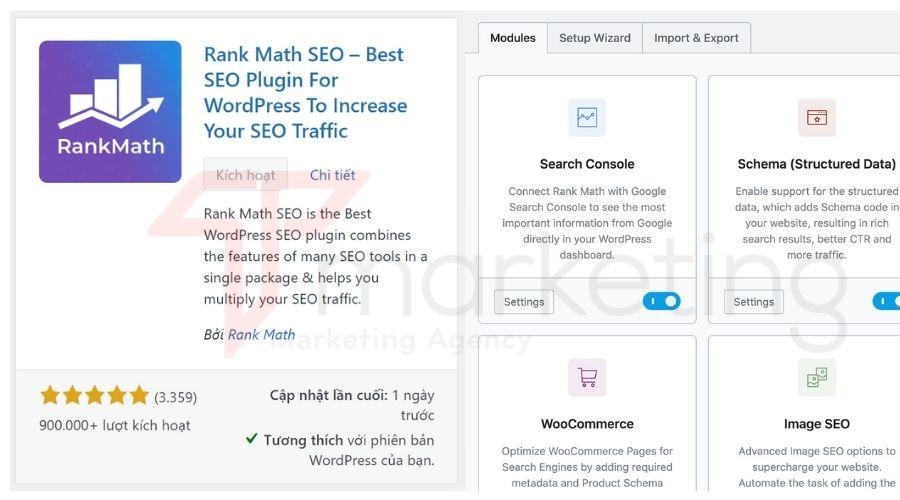 Plugin Rank Math SEO là plugin hỡ trợ tối ưu SEO cho website tốt nhất hiện nay. Plugin giúp tạo các file sitemap.xml, robots.txt tự động, schema, tối ưu các thẻ meta, bài viết…