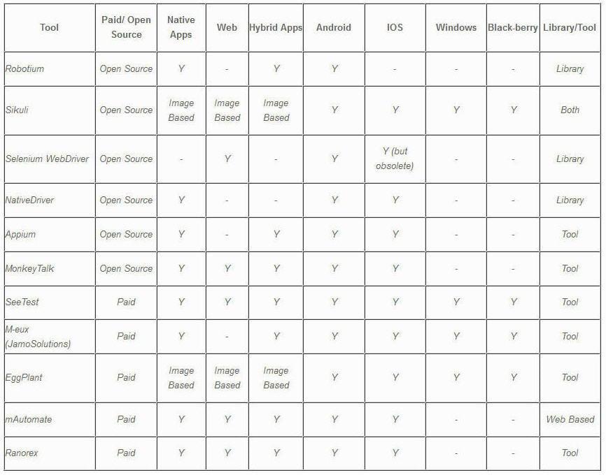 Vậy thì chính xác những gì bạn đang tìm kiếm trong giải pháp kiểm thử di động là gì? Một IDE để giảm kịch bản (script), cách tiếp cận dựa trên từ khóa để ngay cả những người manual testers cũng có thể sử dụng nó một cách hiệu quả, tích hợp với đám mây di động (mobile cloud) để giúp bạn vượt qua các thách thức của thiết bị, hay một công cụ giúp bạn xác định đối tượng dựa trên thuộc tính và trên hình ảnh. Nhiều giải pháp đã được cung cắp sẵn có trên thị trường như là - Robotium, Appium, Calabash từ mã nguồn mở v.v