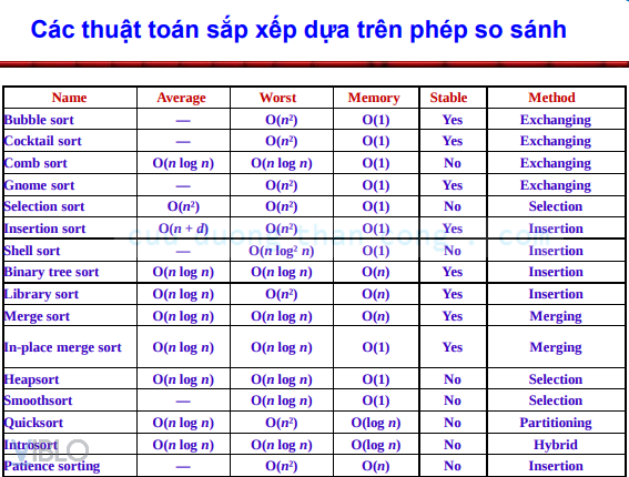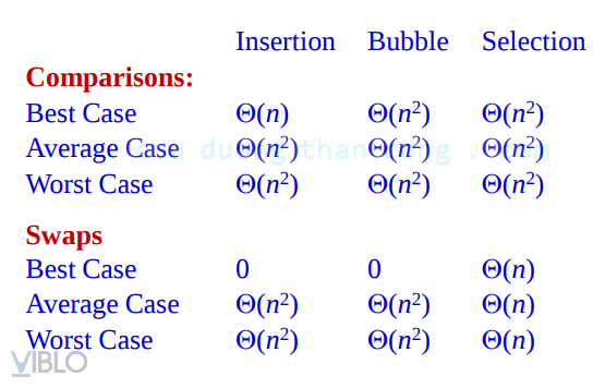 - Worst Case: /2 hoán đổi và so sánh (khi dãy đầu vào có thứ tự ngược lại với thứ tự cần sắp xếp)