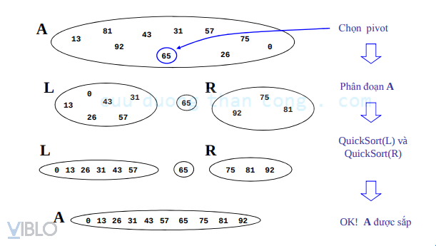 - A[pivot+1..right] là tập hợp các phần tử có gía trị lớn hơn A[pivot].