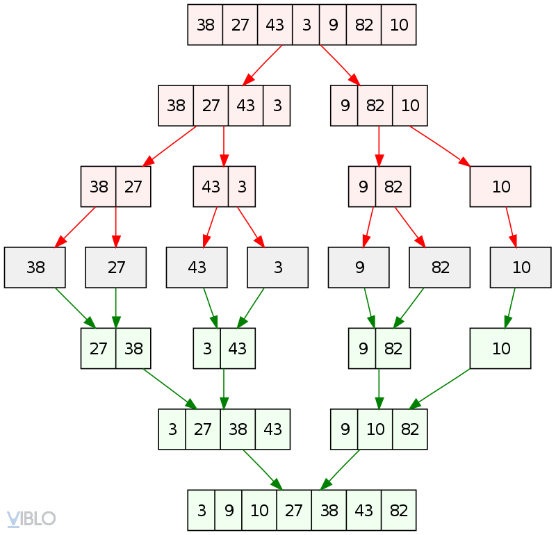 - Tổ hợp (Combine): Trộn (Merge) hai dãy con được sắp xếp để thu được dãy được sắp xếp gồm tất cả các phần tử của cả hai dãy con.