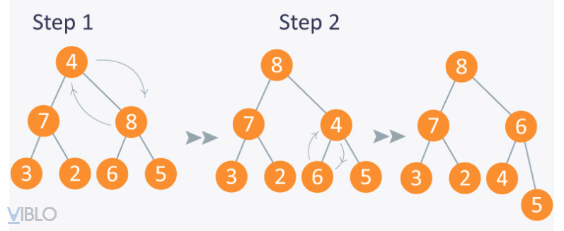 - Tiếp tục quá trình cho đến khi node i không còn bé hơn con.