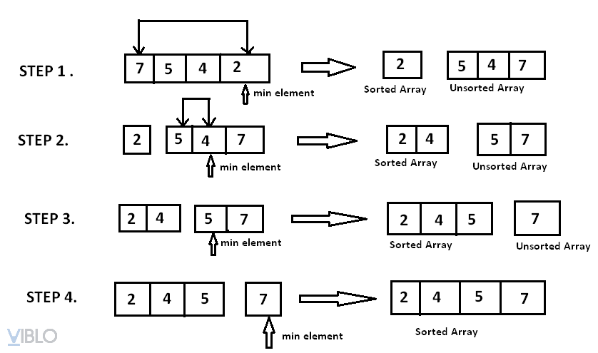 Ý tưởng của Selection sort là tìm từng phần tử cho mỗi vị trí của mảng hoán vị A' cần tìm.