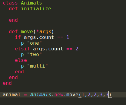 Tùy theo số lượng tham số bạn truyền vào để code vào vùng count cho phù hợp ở đây mình chỉ ví dụ là nó puts ra string gì đó khi tham số với count là 1 , 2, hay nhiều hơn