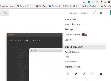 Ok, nếu đã làm tới đây thì bạn đã bước được 1 nửa đường rồi, tiếp đến mình sẽ tiến hành xử lí gọi api để lấy dữ liệu. Các bạn vào trang pexels , đăng kí một tài khoản, các bạn có thể lấy images hoăc videos tùy thích nhưng trước tiên cần request 1 aip key theo các bước sau, ( các bạn nên dành chút thời gian đọc document để hiểu rõ hơn cấu trúc response trả về ) :