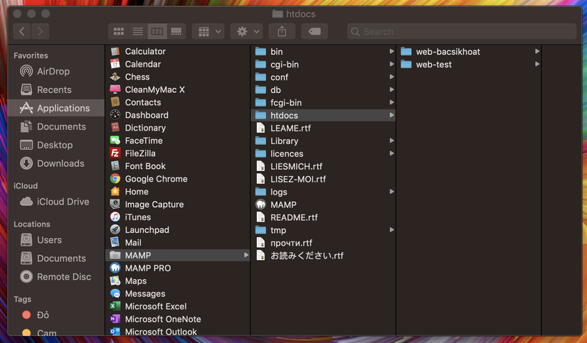 Cài đặt web trực tiếp trên thư mục htdocs có thể dẫn đến việc, chẳng may bạn xoá mất MAMPP bằng phần mềm thứ ba thì toàn bộ web chứa trong MAMPP Application sẽ mất. B nên trỏ lại đường dẫn web về thư mục khác:
