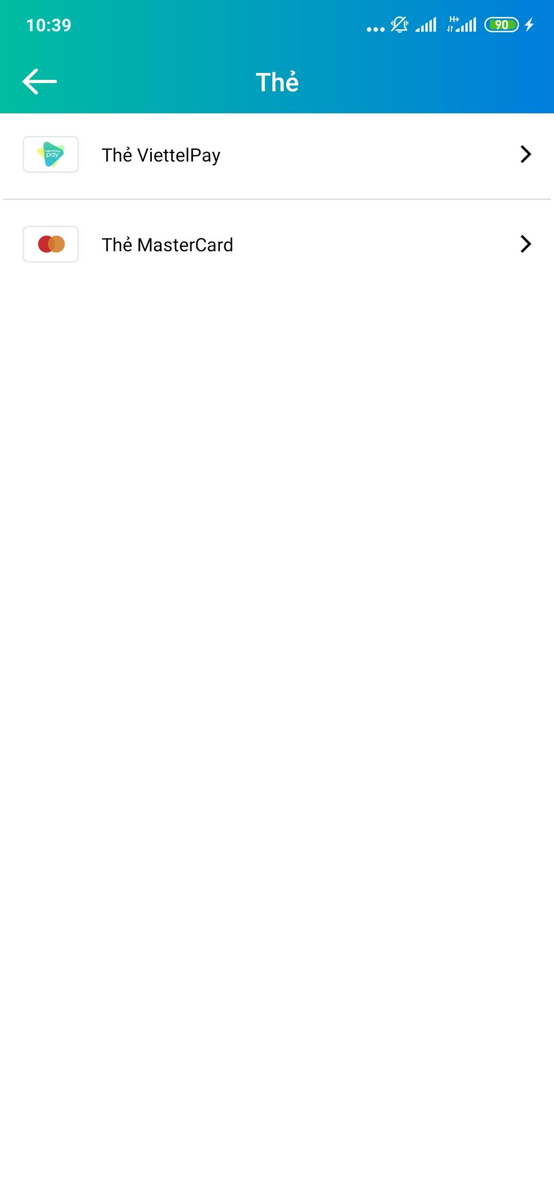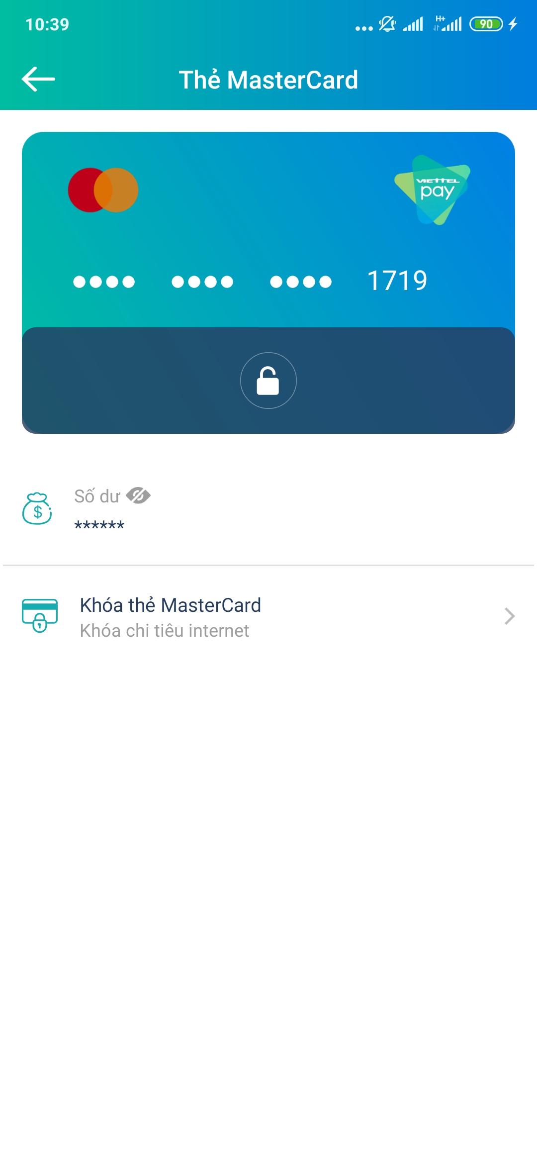 Chọn “Thẻ” sau đó chọn “Thẻ Mastercard ViettelPay”