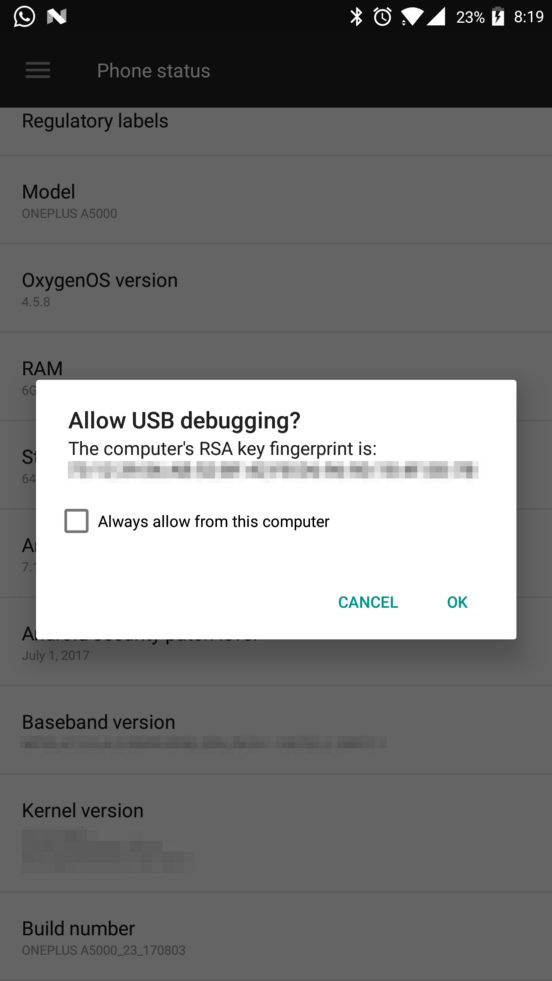 - Kết nối thiết bị Android với máy tính của bạn bằng cáp USB, điều này sẽ cần bạn cấp phép kết nối. Bạn nhấn OK.