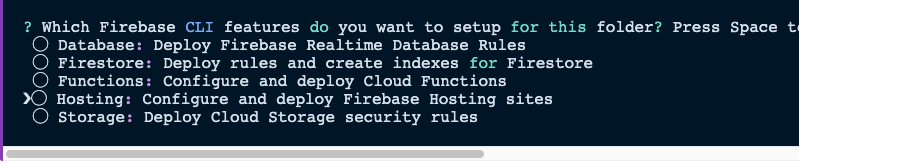 - Sau đó, chọn tùy chọn Hosting. Nếu bạn quan tâm đến việc sử dụng một công cụ khác để lưu trữ ứng dụng Firebase của mình, hãy chọn tùy chọn khác: