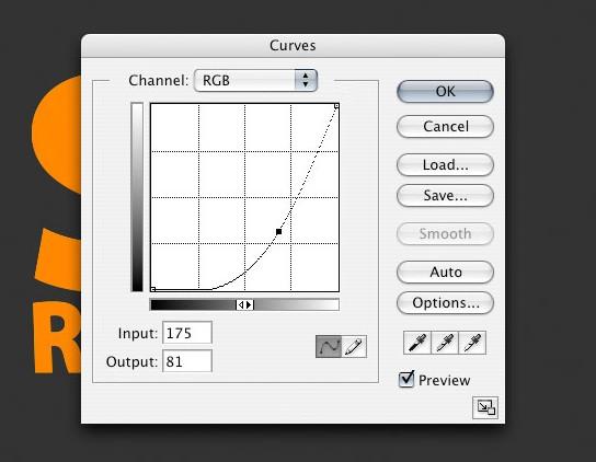 Bây giờ chúng ta đã có một logo không có layer style, tiếp theo bạn cần điều chỉnh màu sắc. Mở tùy chọn Curves bằng cách chọn Image> Adjustment > Curves (Ctrl + M) và điều chỉnh chúng như dưới đây.
