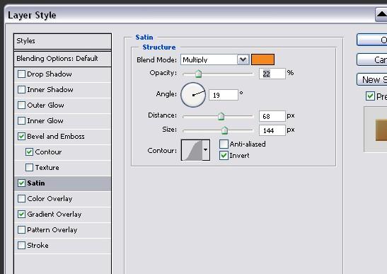 Quay lại hộp thoại Layer Styles và áp dụng kiểu Satin layer style. Hiệu ứng này sẽ mang đến chiều sâu cho màu sắc trên văn bản của thay vì chỉ là một khối màu hoặc gradient. Đổi màu thành #F3881F.