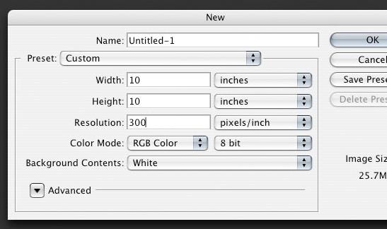 Bạn cần tạo một file mới (Ctrl + N). Trong hộp thoại, điền thông số như hình dưới đây nhé