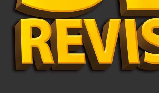 Ở bước này chúng ta sẽ viết chữ. Chọn Horizontal Type Tool và nhập văn bản mà bạn muốn. Thay đổi màu của văn bản trong thanh Tùy chọn thành màu vàng (# FFCC00). Bạn nên sử dụng cỡ chữ lớn và thử chọn loại phông chữ đậm vì kỹ thuật này hoạt động tốt nhất theo cách này. Phông chữ được sử dụng ở đây là Myriad Pro Black được đặt ở mức 286pt cho từ ’Six, và 83pt cho từ Revisions.