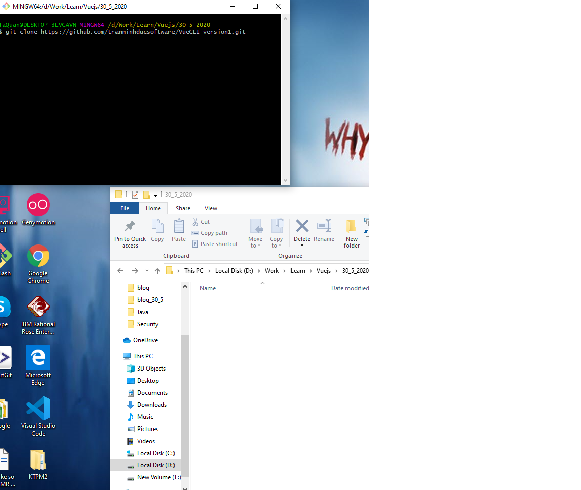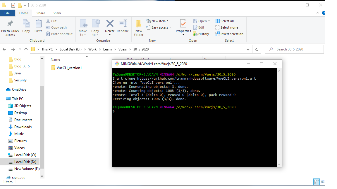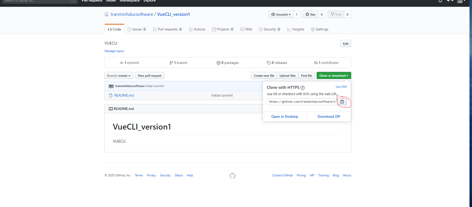Step3: Mở gitbash và clone project rỗng bạn vừa tạo trên github
