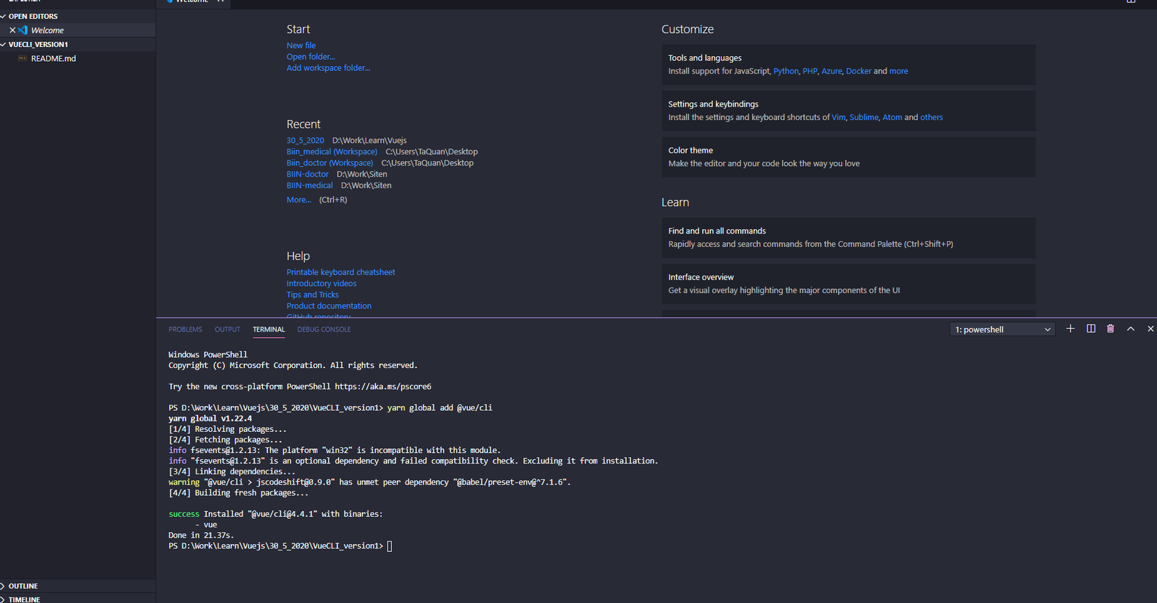 Sau khi cài đặt xong global bạn đã có thể sử dụng *.vue để chạy. Nhưng mục đích của chúng ta là một cấu trúc CLi hoàn thiện nên chúng ta sẽ sử dụng lệnh