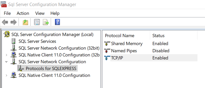 PHP Warning: require(../vendor/autoload.php): failed to open stream: No such file or directory in ../artisan on line 18. PHP Fatal error: require(): Failed opening required '../vendor/autoload.php' (include_path='../php') in ../artisan on line 18 - Mình dùng SQL Server 2019 Developer và trạng thái của giao thức TCP/IP đã bị disabled nên mình sẽ enabled nó lên, ta đc: