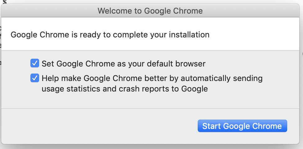 Bạn sẽ thấy thông báo như sau, chọn Start Google Chrome để bắt đầu