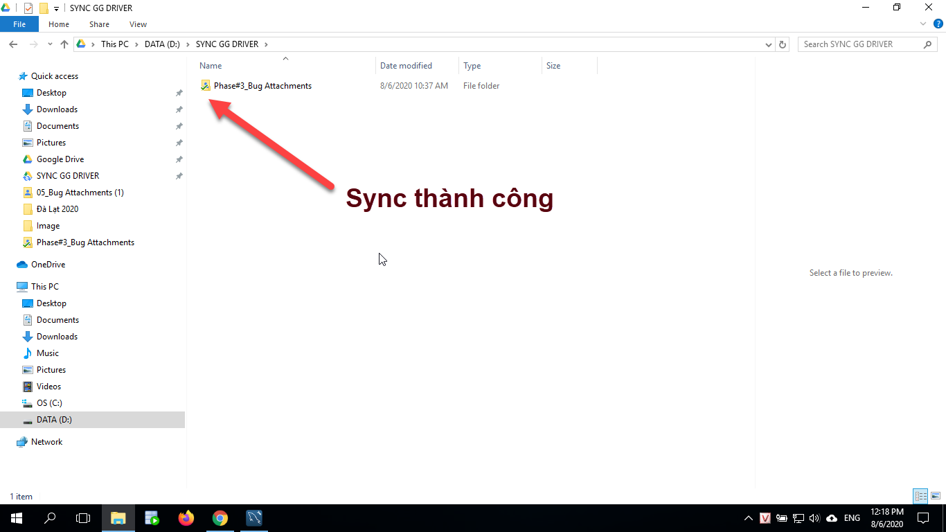 Sau khi chọn Folder cần Sync thì đợi Sync xong, kết quả thành công sẽ như dưới (có dấu tick xanh):