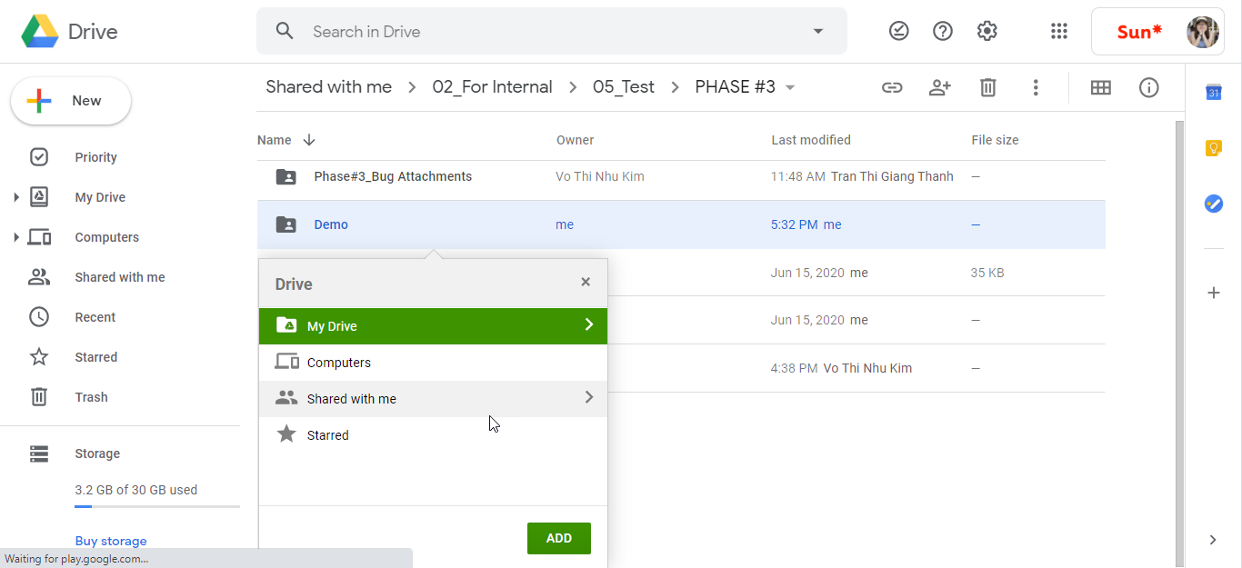 III. Cách "Add to My Driver" (Add folder từ Driver Web sang Driver Cá nhân)