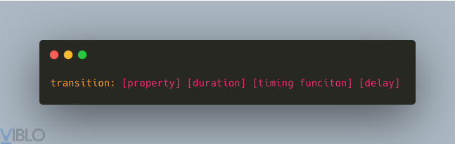 Nếu bạn chưa biết vầ thuộc tính transition thì đây là một thuộc tính chỉ ra khi bạn thay đổi một thuộc tính CSS thì sẽ có thay đổi trong bao lâu và khi nào thay đổi. Cú pháp của nó là: