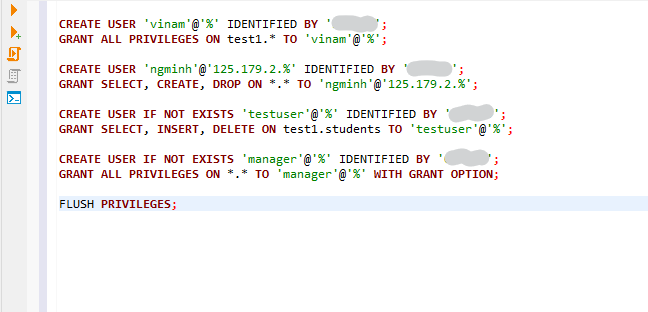 (Note: Bạn có thể tham khảo thêm về thao tác tạo và cấp quyền cho user trên MySQL trong bài đọc này)