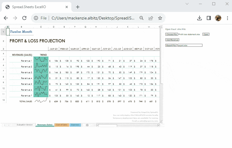 Đây chỉ là một ví dụ đơn giản về cách bạn có thể sử dụng bảng tính JavaScript SpreadJS để thêm dữ liệu vào file Excel và lưu lại thành tệp Excel với JavaScript.