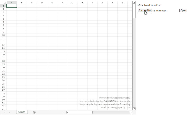 Sau đó, ta thêm hàm mở tệp sử dụng phương thức import của SpreadJS. Trong ví dụ này, ta sẽ mở tệp do người dùng chọn khi nhấn nút Import: