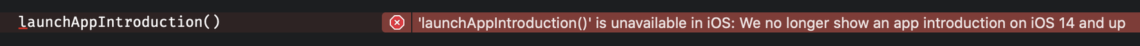 @available(iOS, deprecated: 12, obsoleted: 13, message: "We no longer show an app introduction on iOS 14 and up")