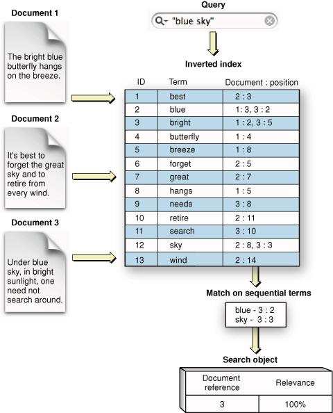 Một Inverted index chứa danh sách từng từ đơn duy nhất (unique work) xuất hiện trong bất kỳ một document nào, ứng với mỗi từ đó sẽ là một danh sách các document mà từ này xuất hiện (mapping). Inverted index được tạo ra từ document và được lưu trữ trong Shard, sau đó được dùng cho searching document.