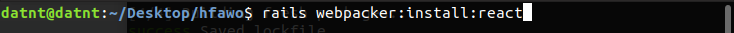 Tiếp theo chạy lần lượt 2 câu lệnh này để cài đặt webpacker và reactjs