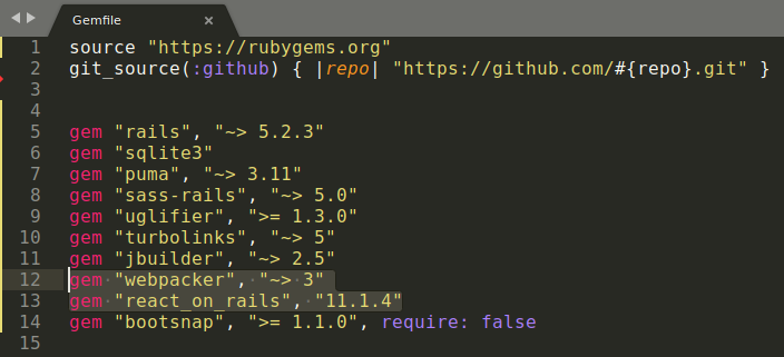 Sau đó mở file Gemfile và thêm vào 2 dòng sau: