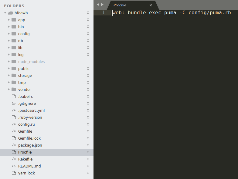 Sau khi đã hoàn thành project, nếu bạn đang sử dụng sqlite thì cần chuyển sang postgre hoặc mysql, sau đó thêm file có tên là Procfile vào trong project ( cùng cấp với các folder app, config, ...) để có thể start được project bên phía heroku. Nội dung bên trong ghi như sau: